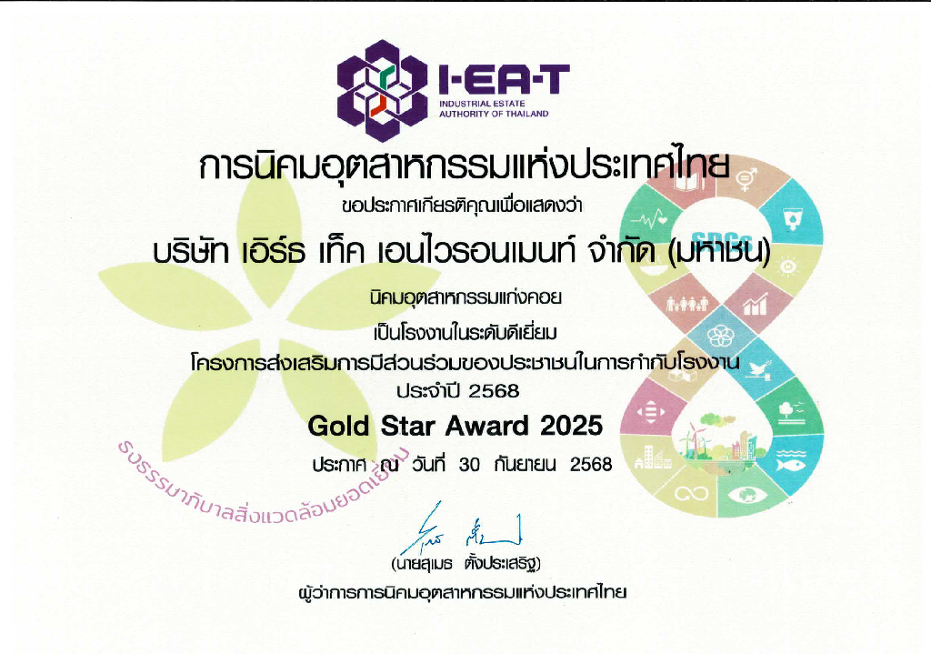 บริษัท เอิร์ธ เท็ค เอนไวรอนเม้นท์ จำกัด (มหาชน) ได้รับรางวัลธรรมาภิบาลสิ่งแวดล้อมและความปลอดภัย (ธงขาว-ดาวทอง) ประจำปี 2568