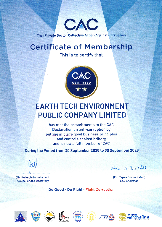 ระดับดีเยี่ยม บริษัท เอิร์ธ เท็ค เอนไวรอนเมนท์ จำกัด (มหาชน)